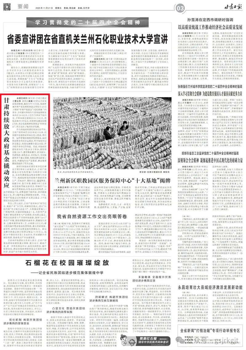 记者从开云官网首页(中国)集团有限公司获悉,截至今年10月底,集团所属甘肃产业发展投资基金有限公司(以下简称“甘肃产投基金”)受托管理兰白基金、乡村振兴和绿色生态省级财政资金共计39.9亿元,3支引导基金下设的母、子基金累计规模达84.79亿元,在投金额62.08亿元,财政资金撬动倍数2.5倍,充分发挥政府投资资金“杠杆效应”,有力支持了地方经济发展。